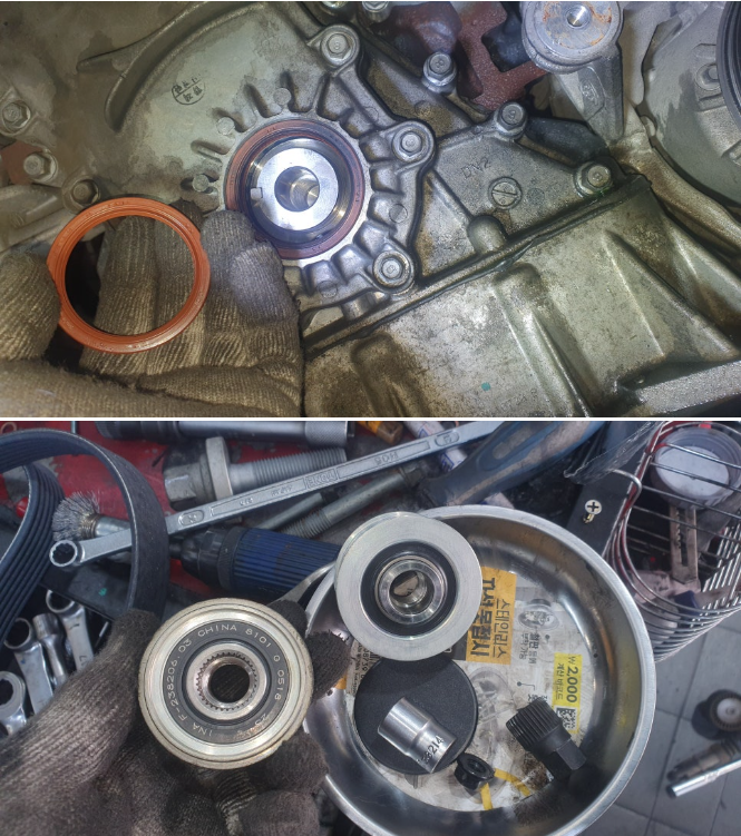 정밀 진단 결과, 이번 소음의 주원인은 발전기 풀리 고착이었습니다.